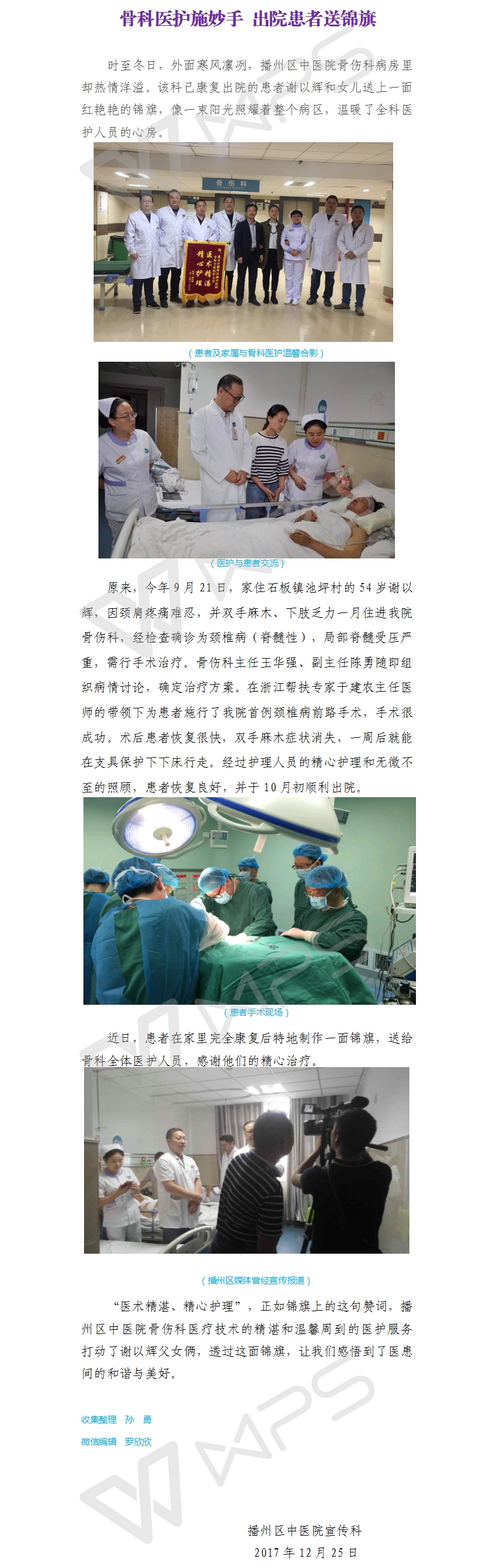 < 88岁高龄患者为区中医院皮肤科送锦旗