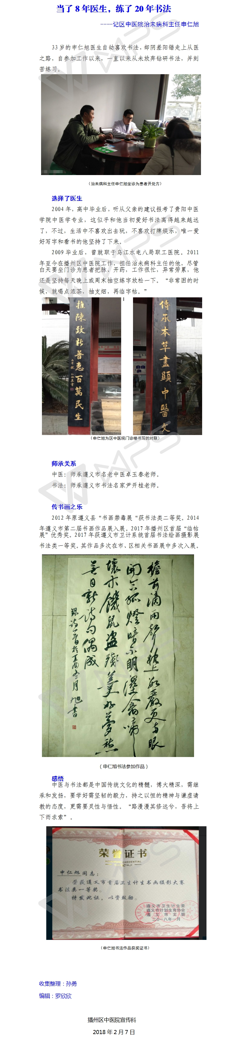 当了8年医生,练了20年书法——记区中医院治未病科主任申仁旭
