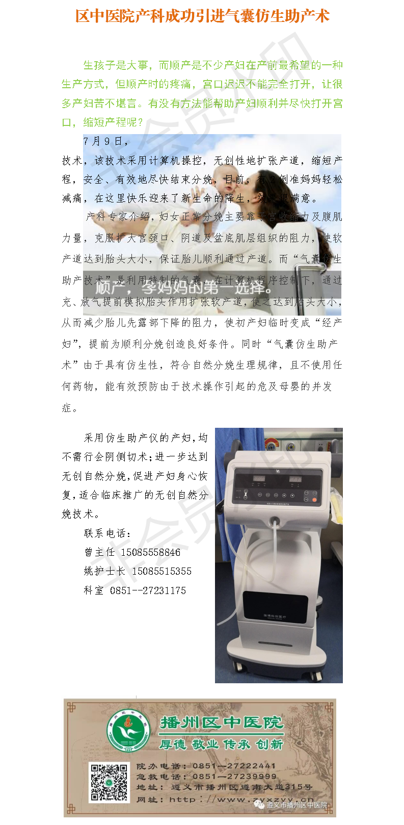 区中医院产科成功引进气囊仿生助产术
