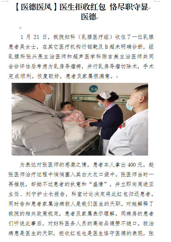 【医德医风】妇科医生拒收红包 恪尽职守尽显医德