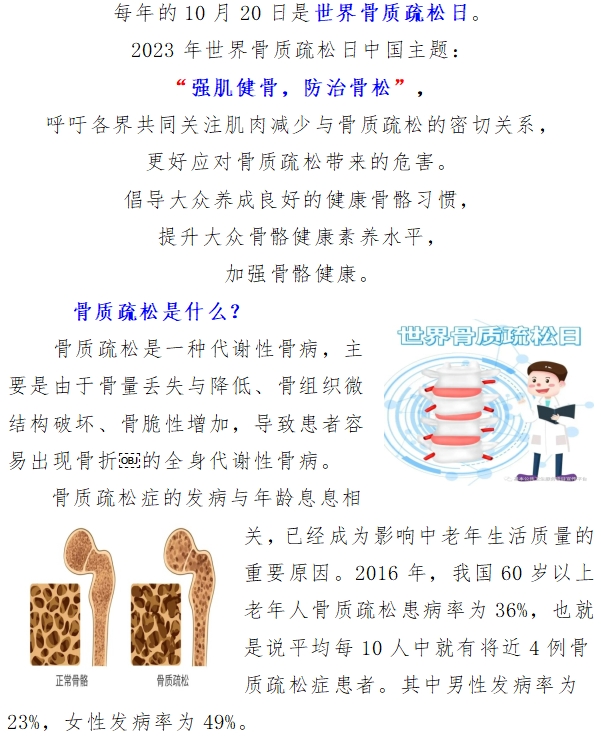 【2023年卫生健康宣传日】世界骨质疏松日——强肌健骨,防治骨松