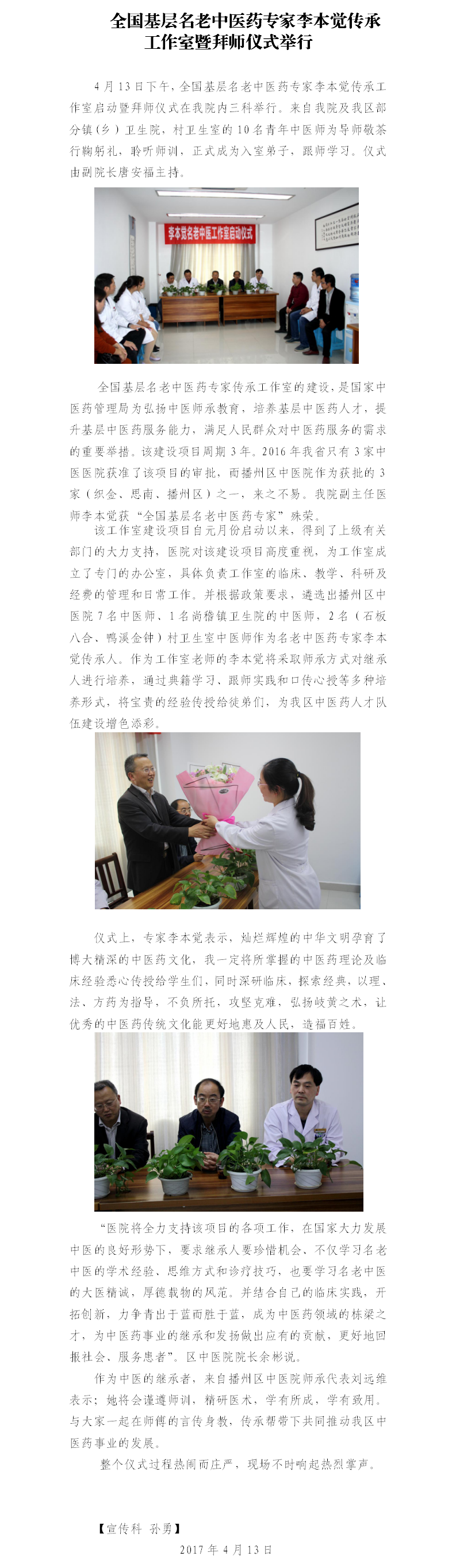 全国基层名老中医药专家李本觉传承工作室暨拜师仪式